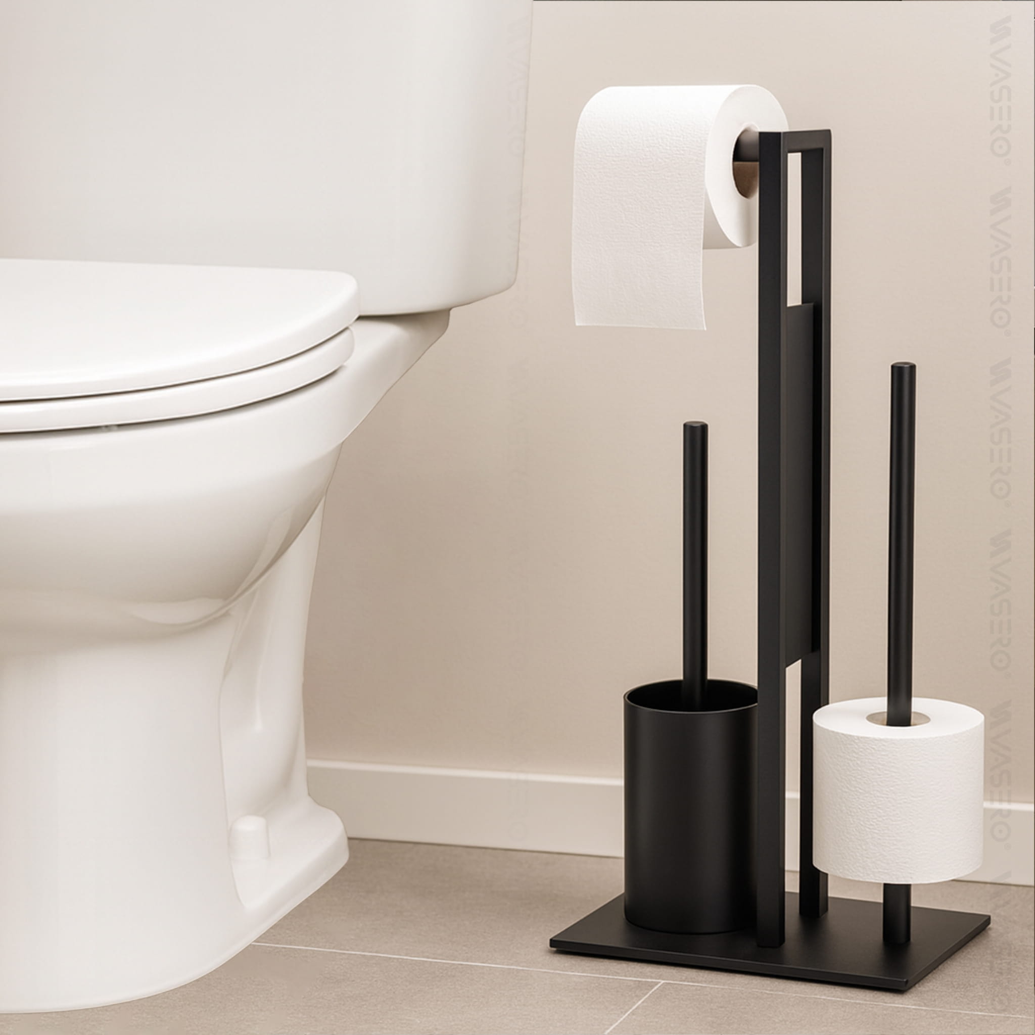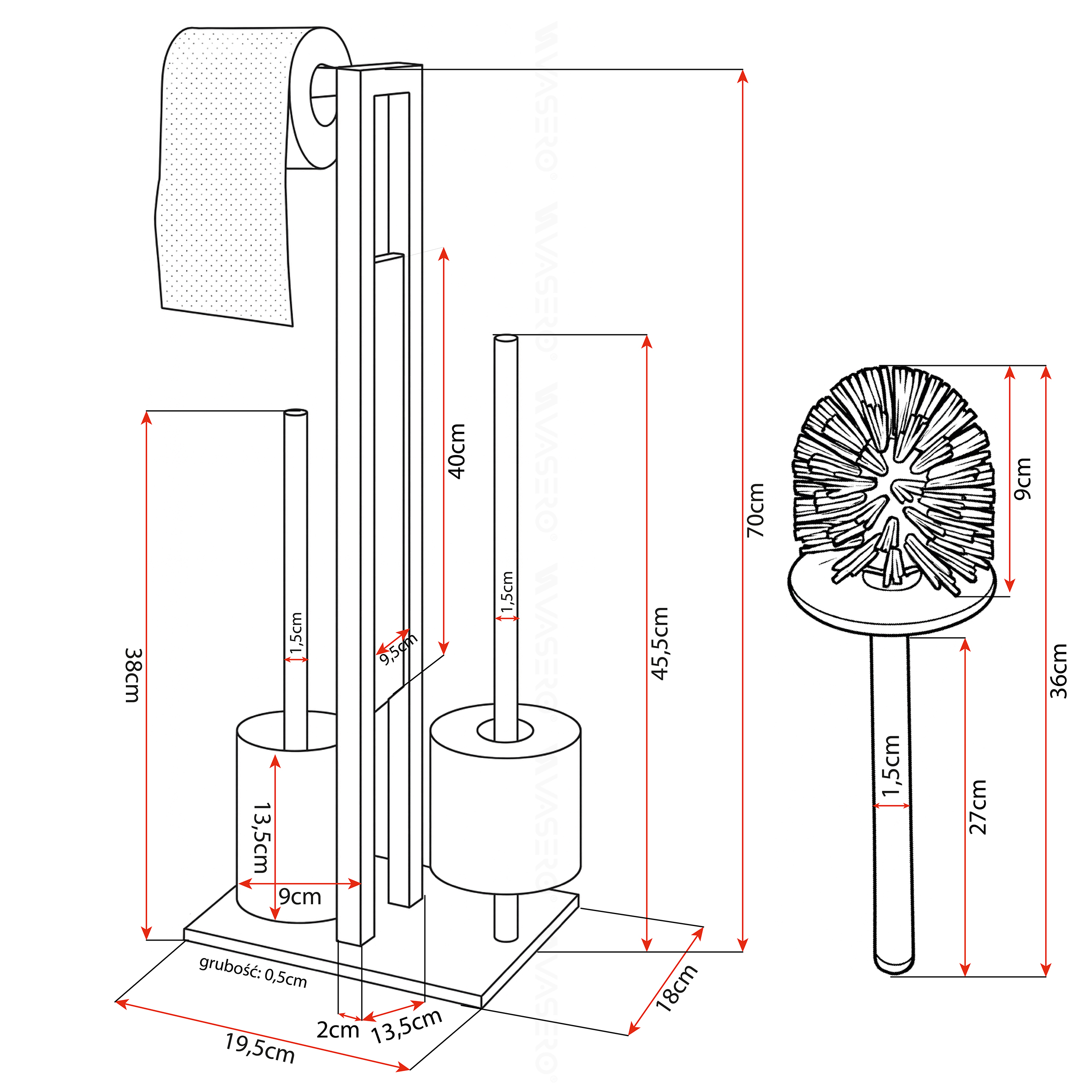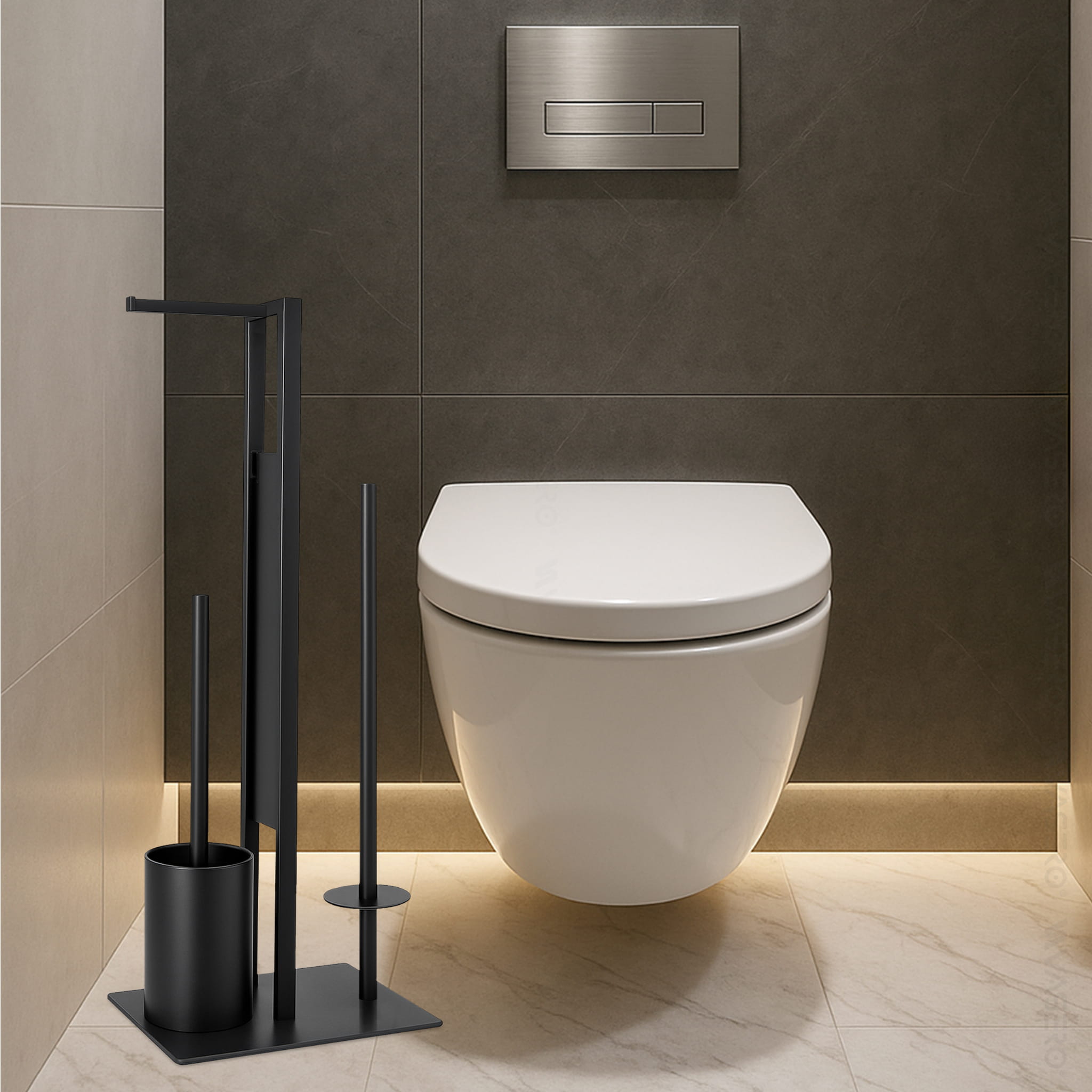 Nowoczesny STOJAK na szczotka metalowy uchwyt na papier toaletowy WC