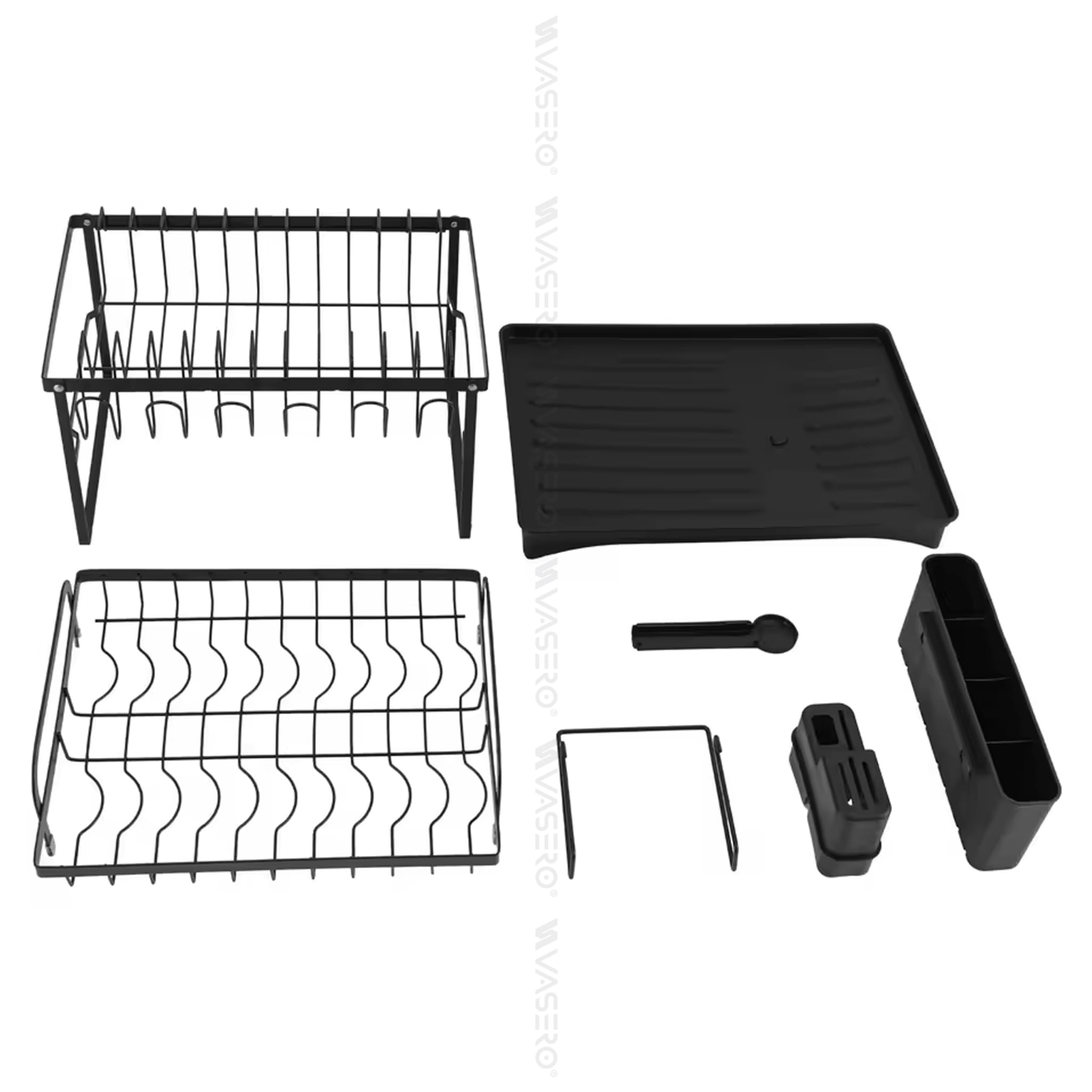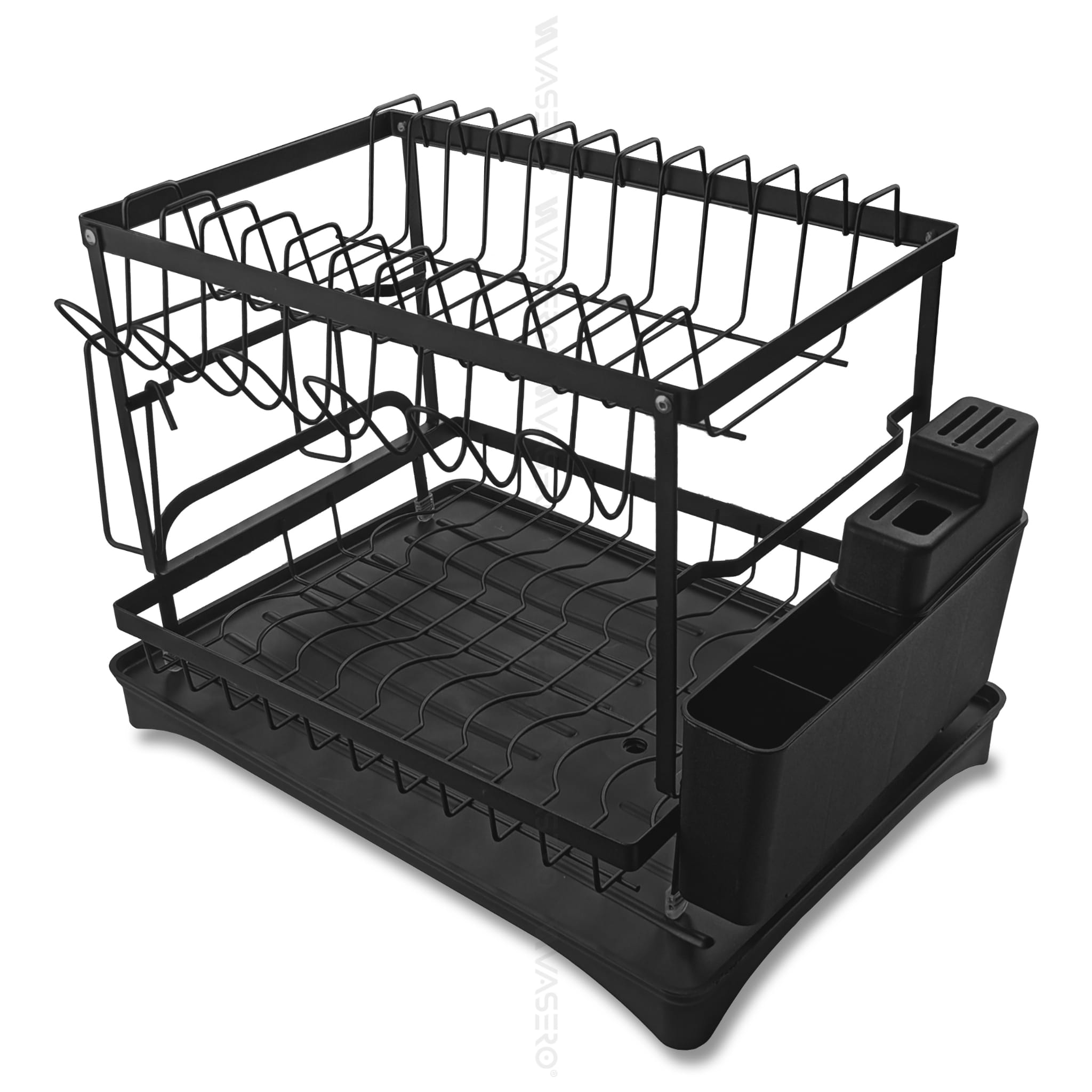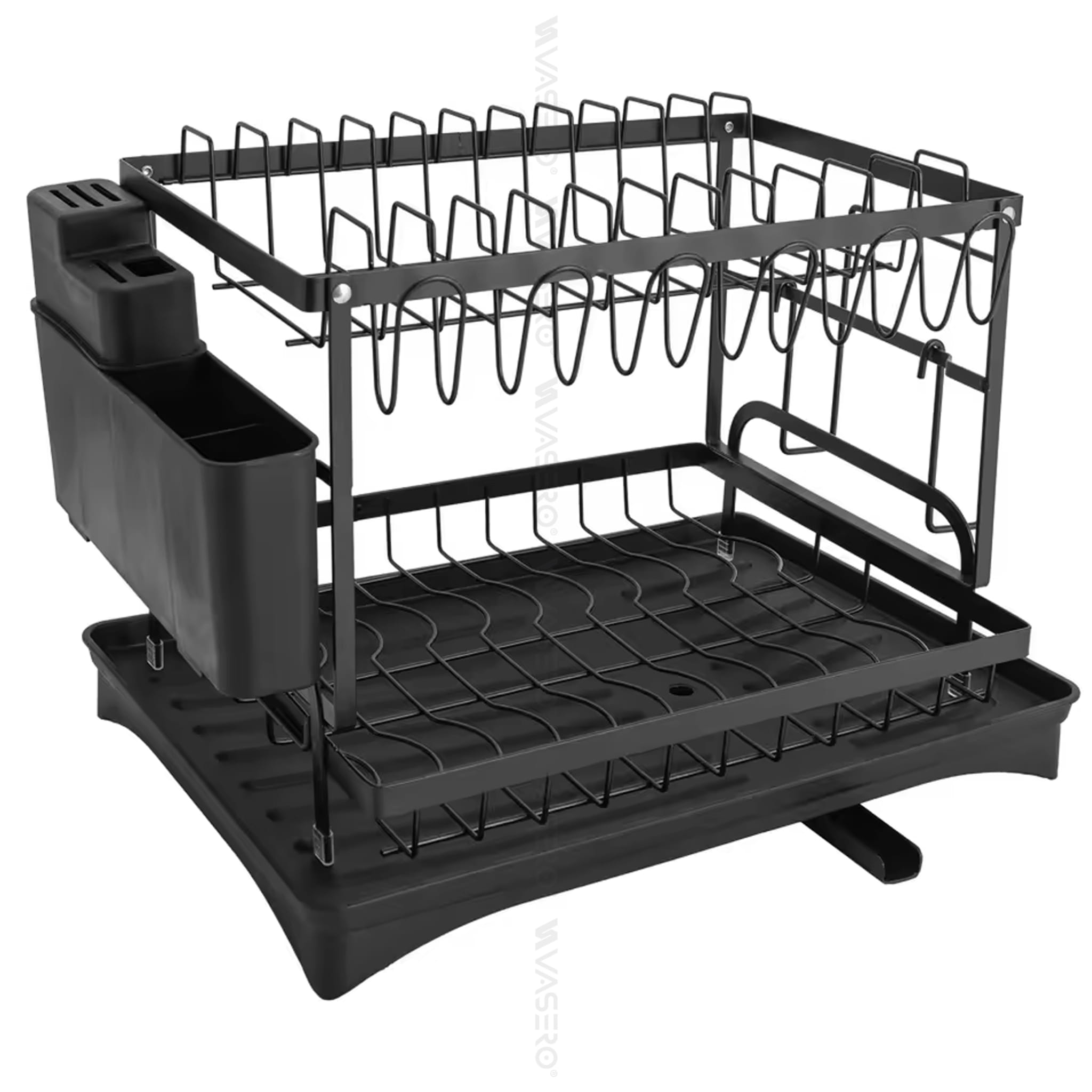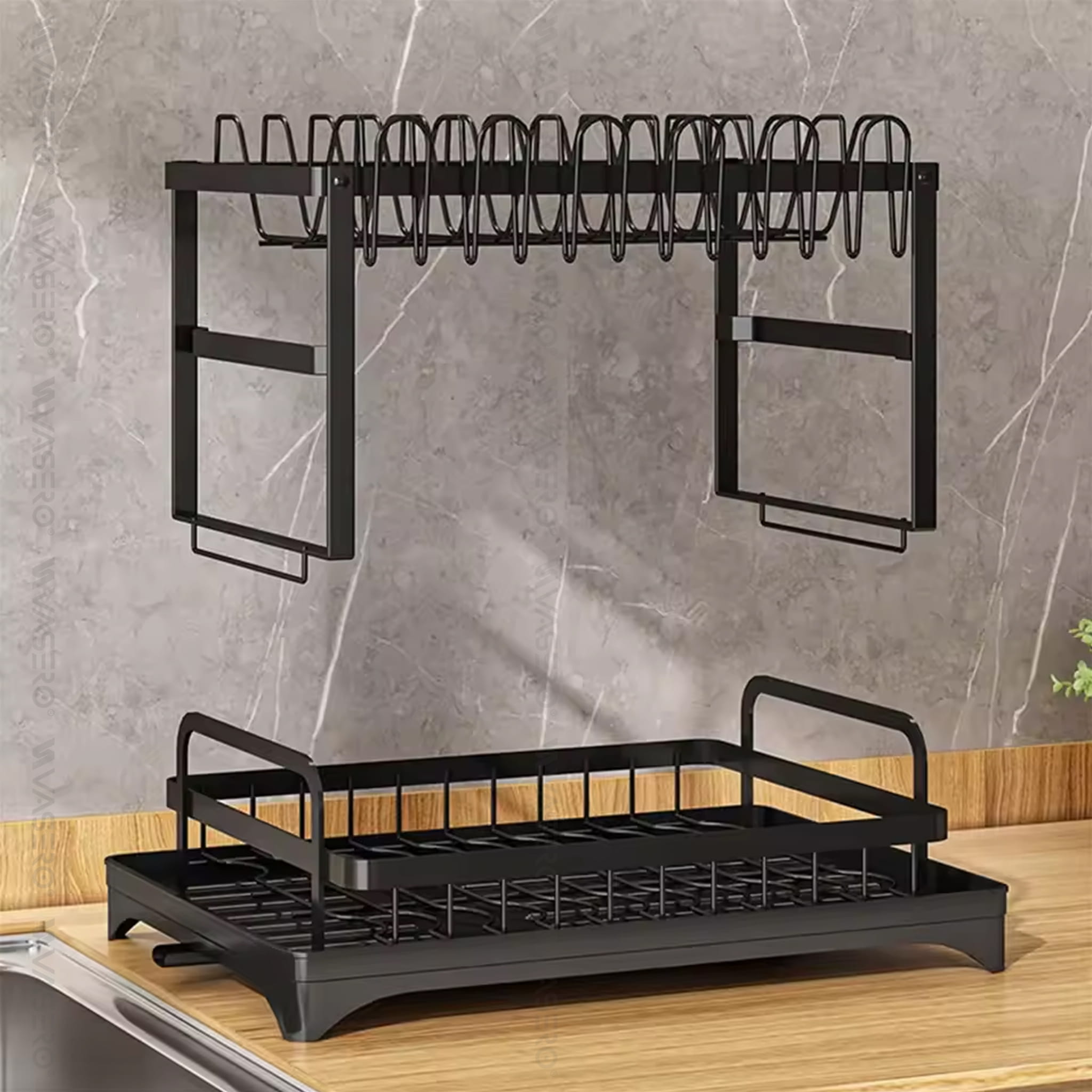 Dwupoziomowa suszarka, ociekacz na naczynia ze stali nierdzewnej, malowana proszkowo na kolor czarny