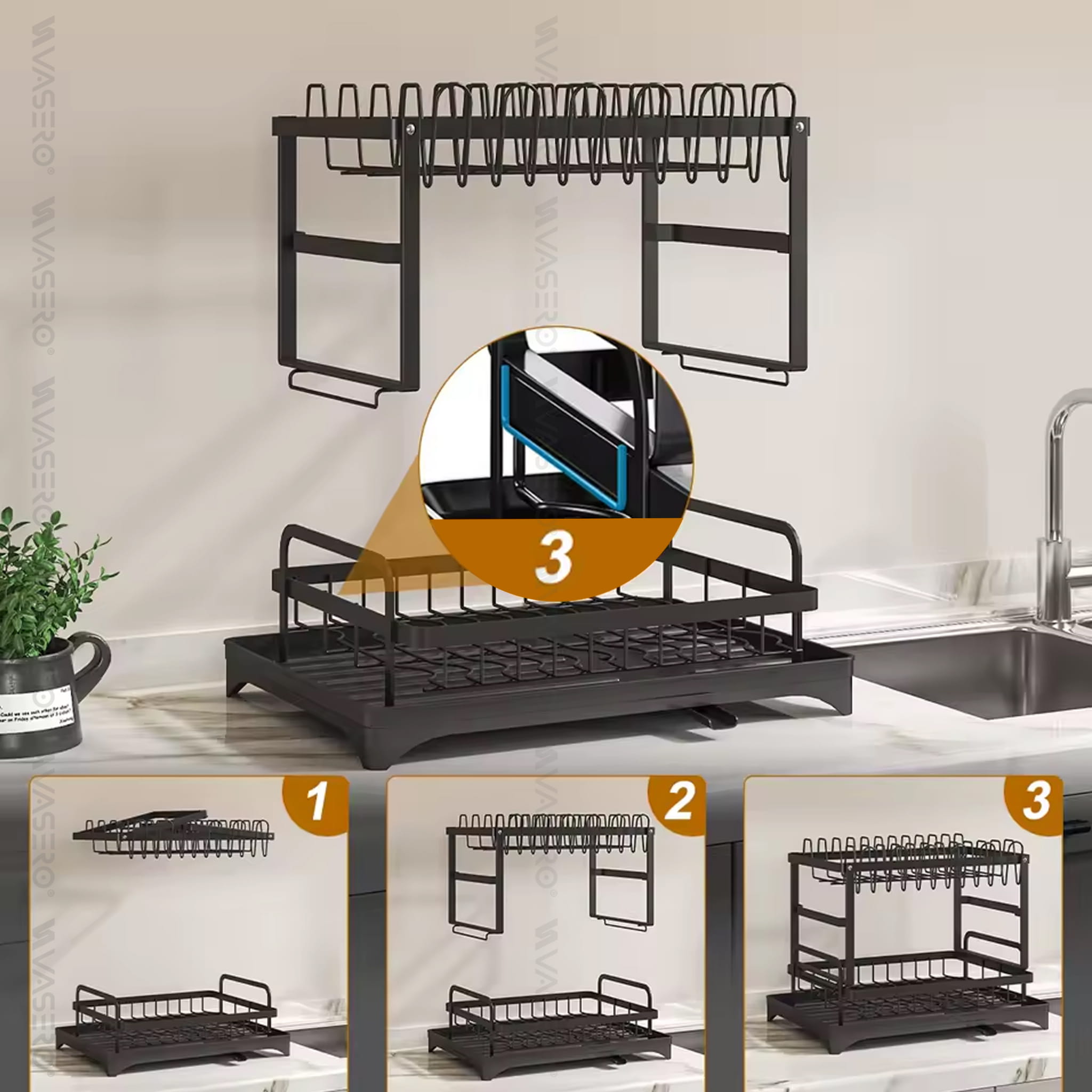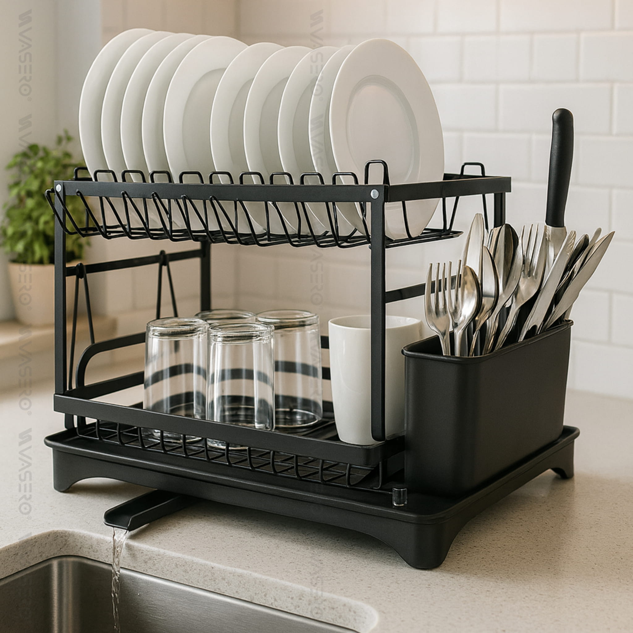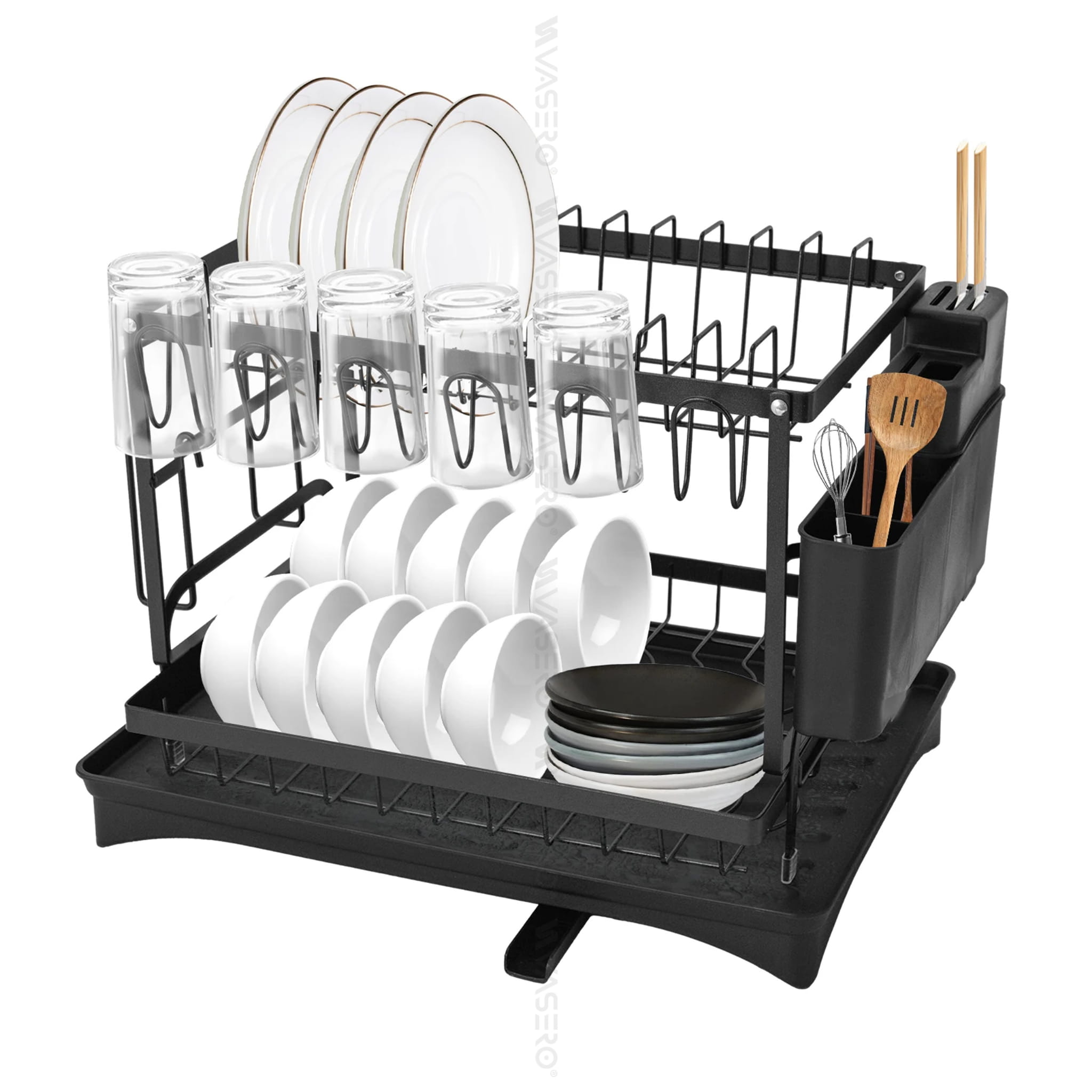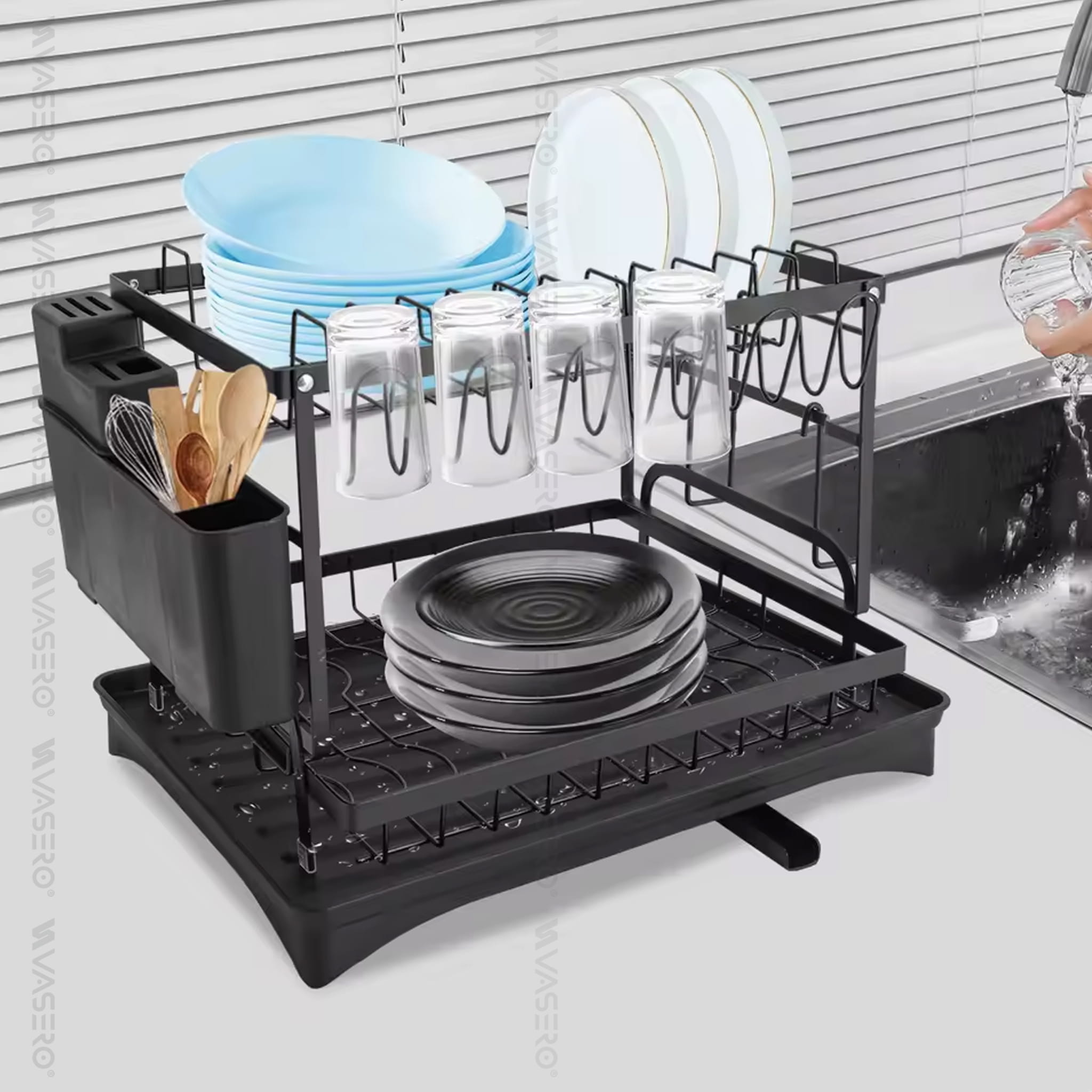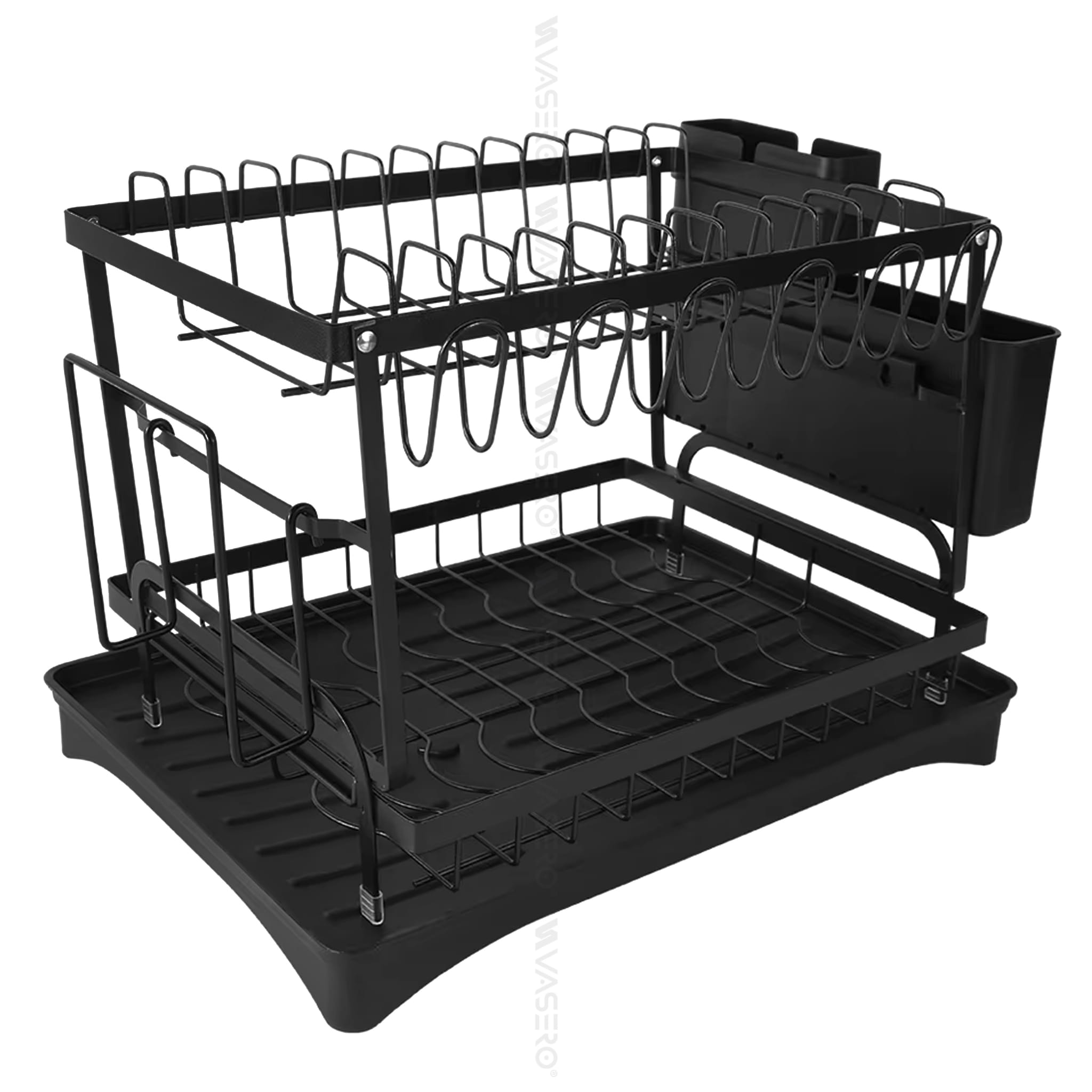 Dwupoziomowa suszarka, ociekacz na naczynia ze stali nierdzewnej, malowana proszkowo na kolor czarny