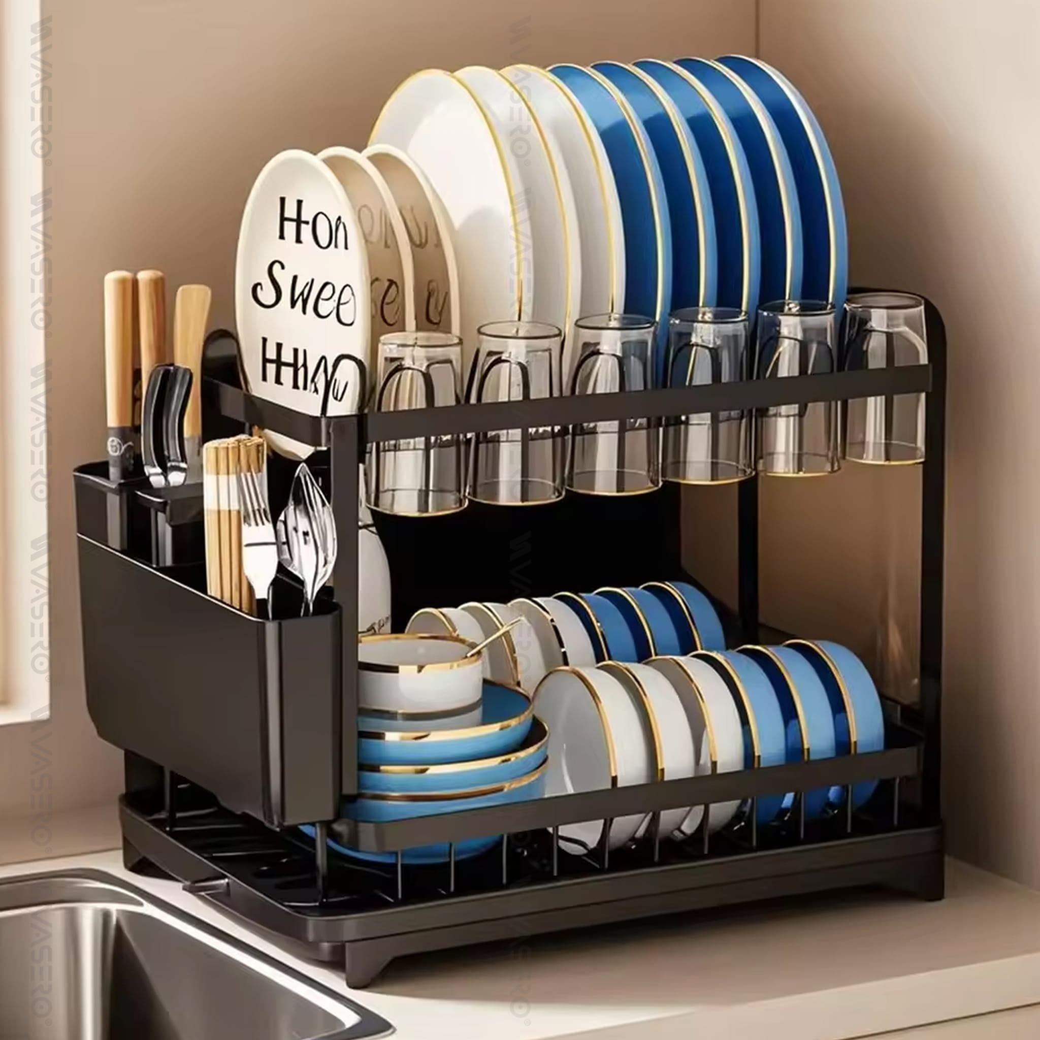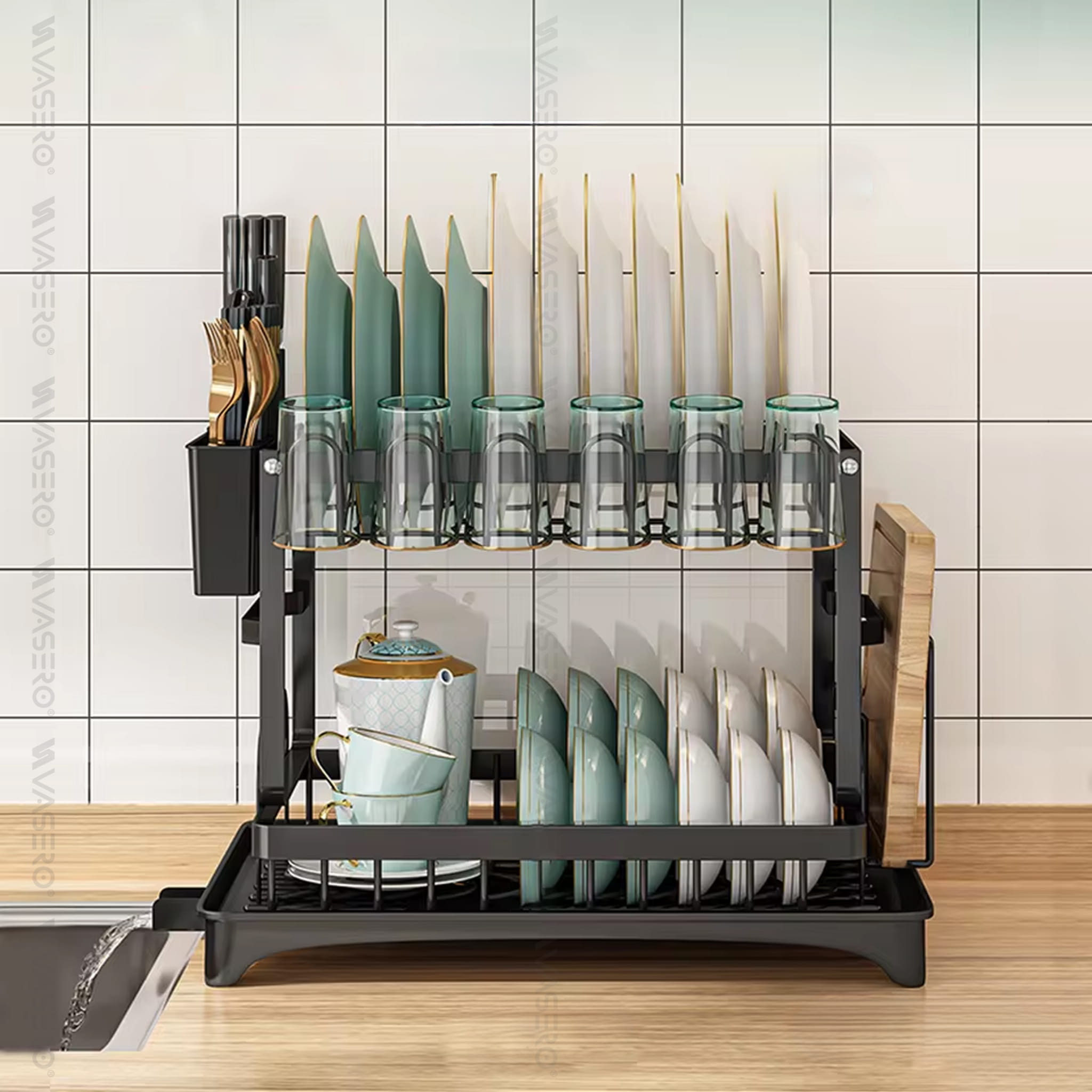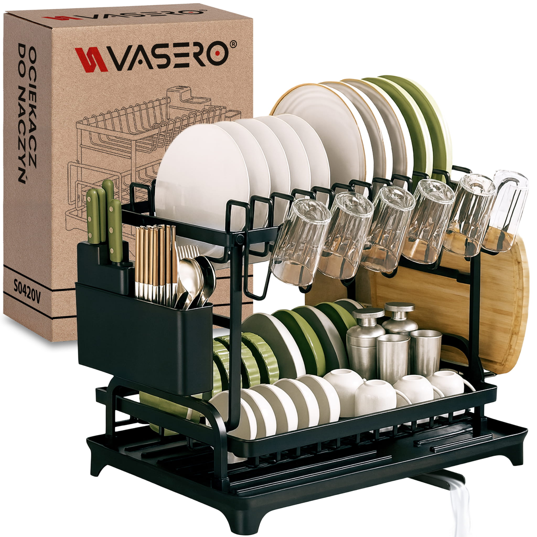 Stojąca Suszarka Do Naczyń Dwupoziomowa Duża Czarna Ociekacz Na Naczynia