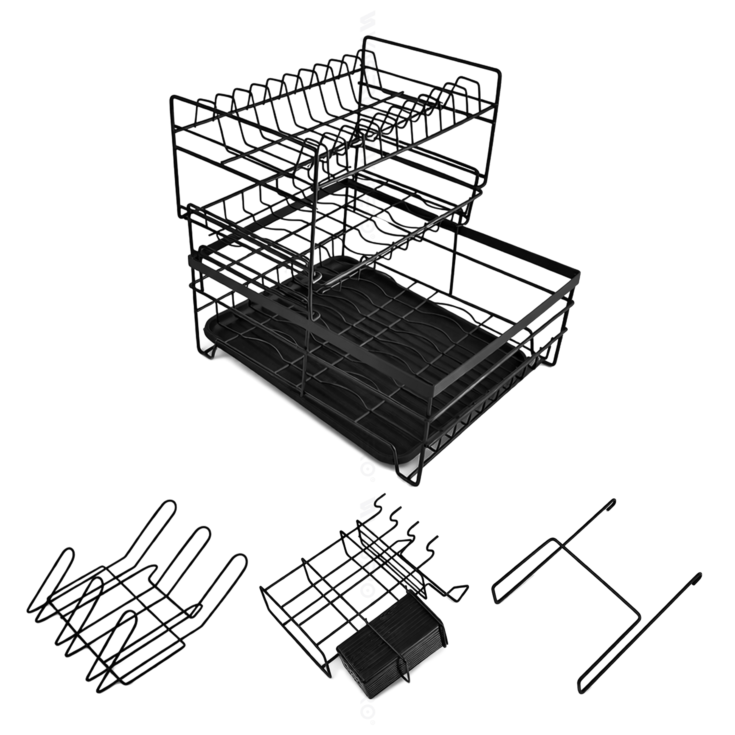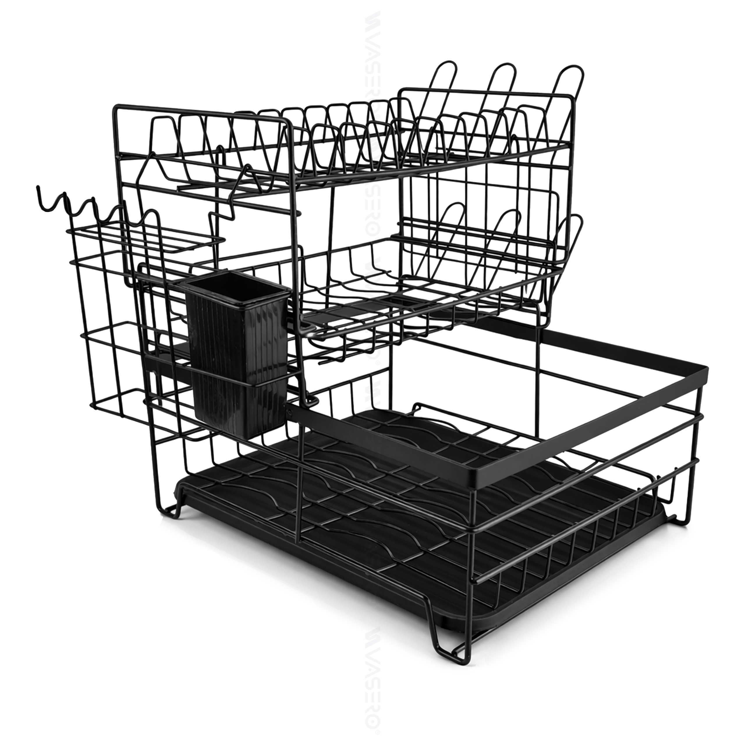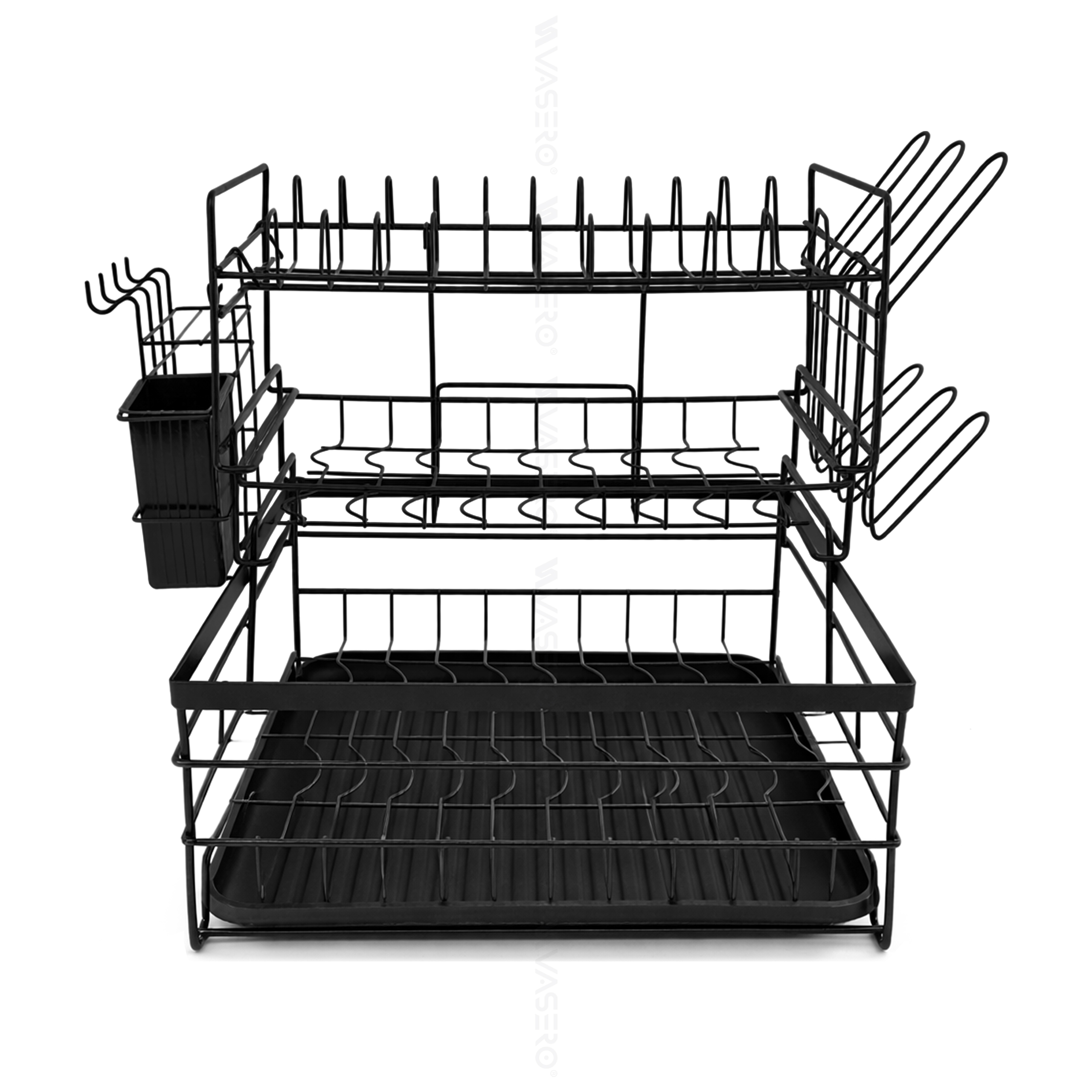 Trzypoziomowa suszarka, ociekacz na naczynia ze stali nierdzewnej, malowana proszkowo na kolor czarny