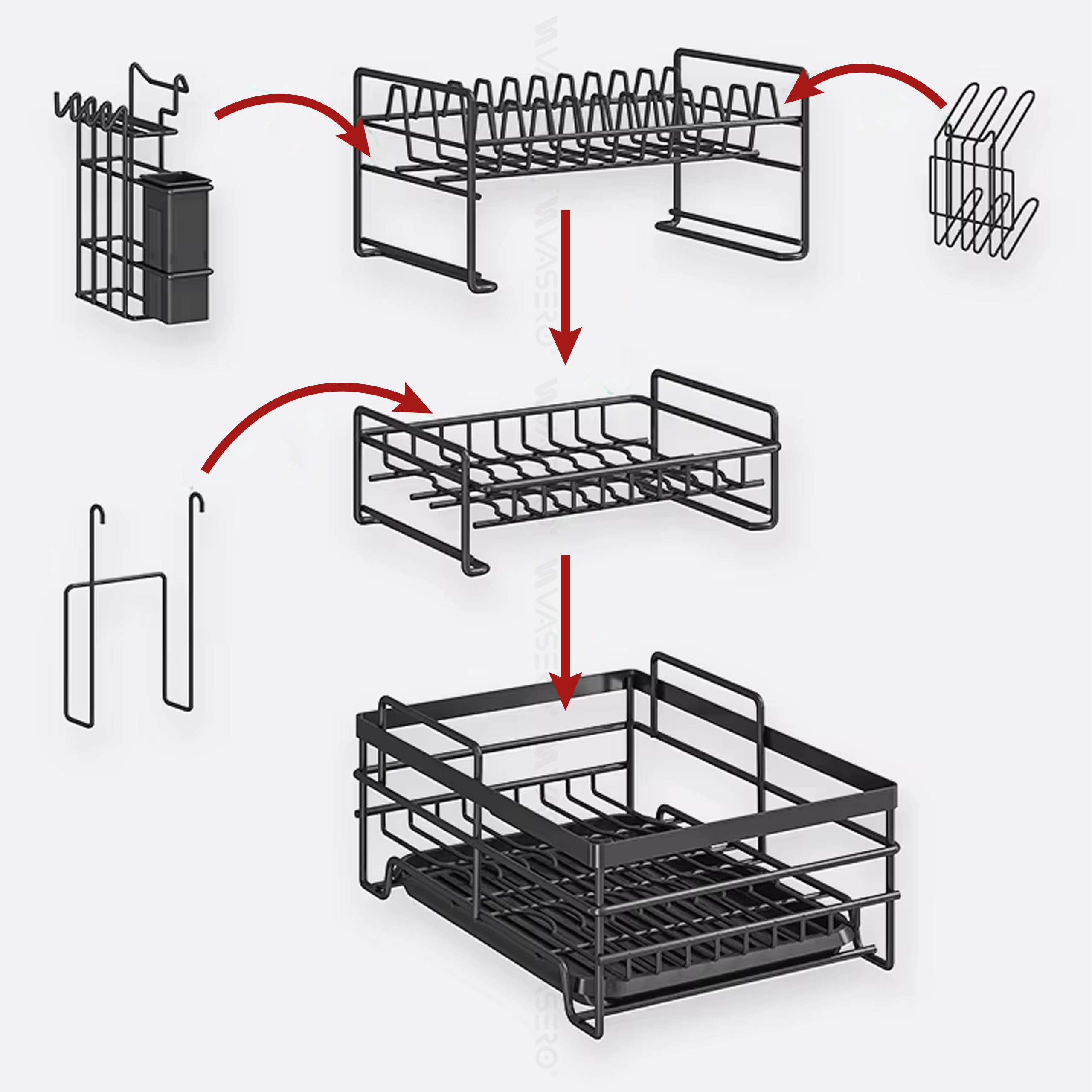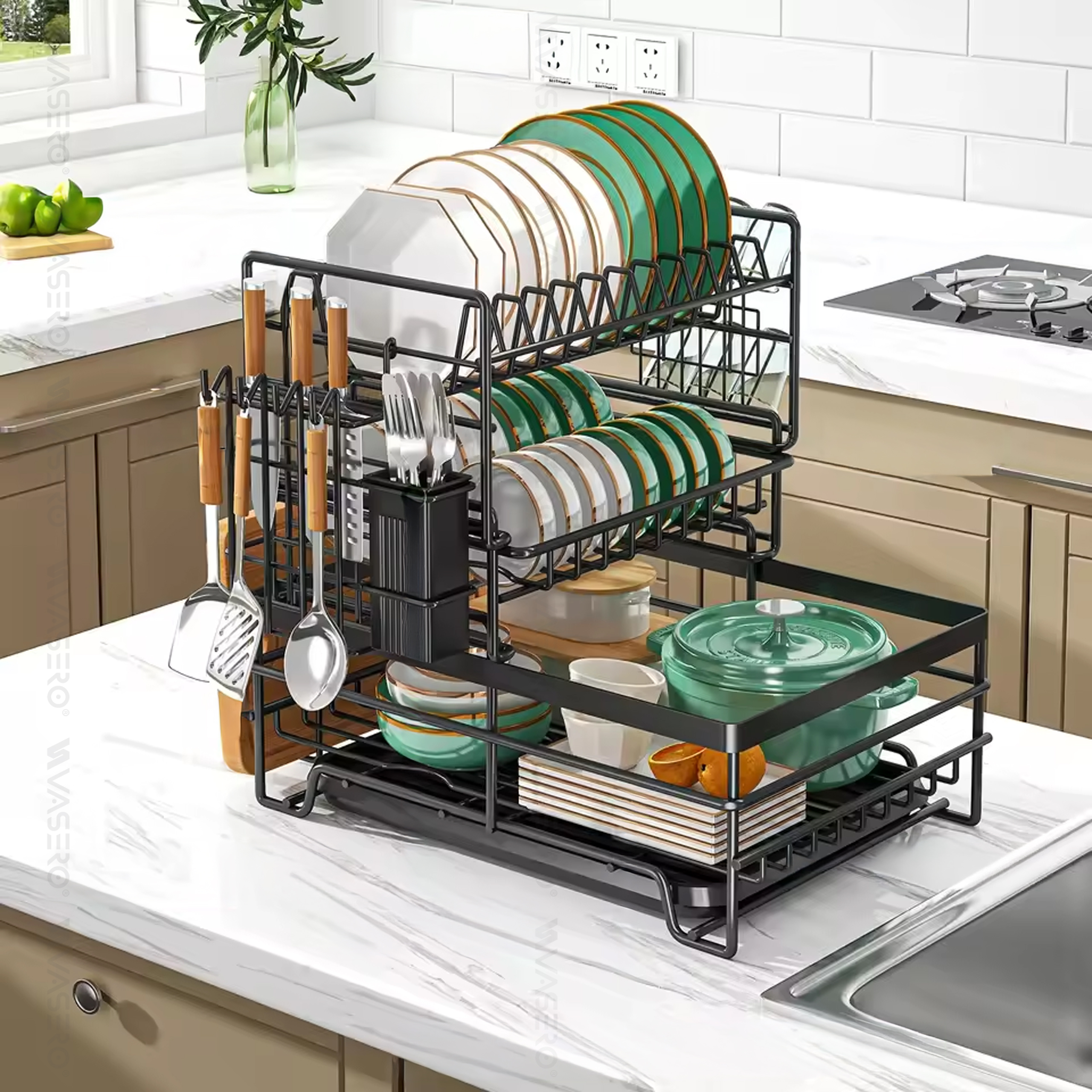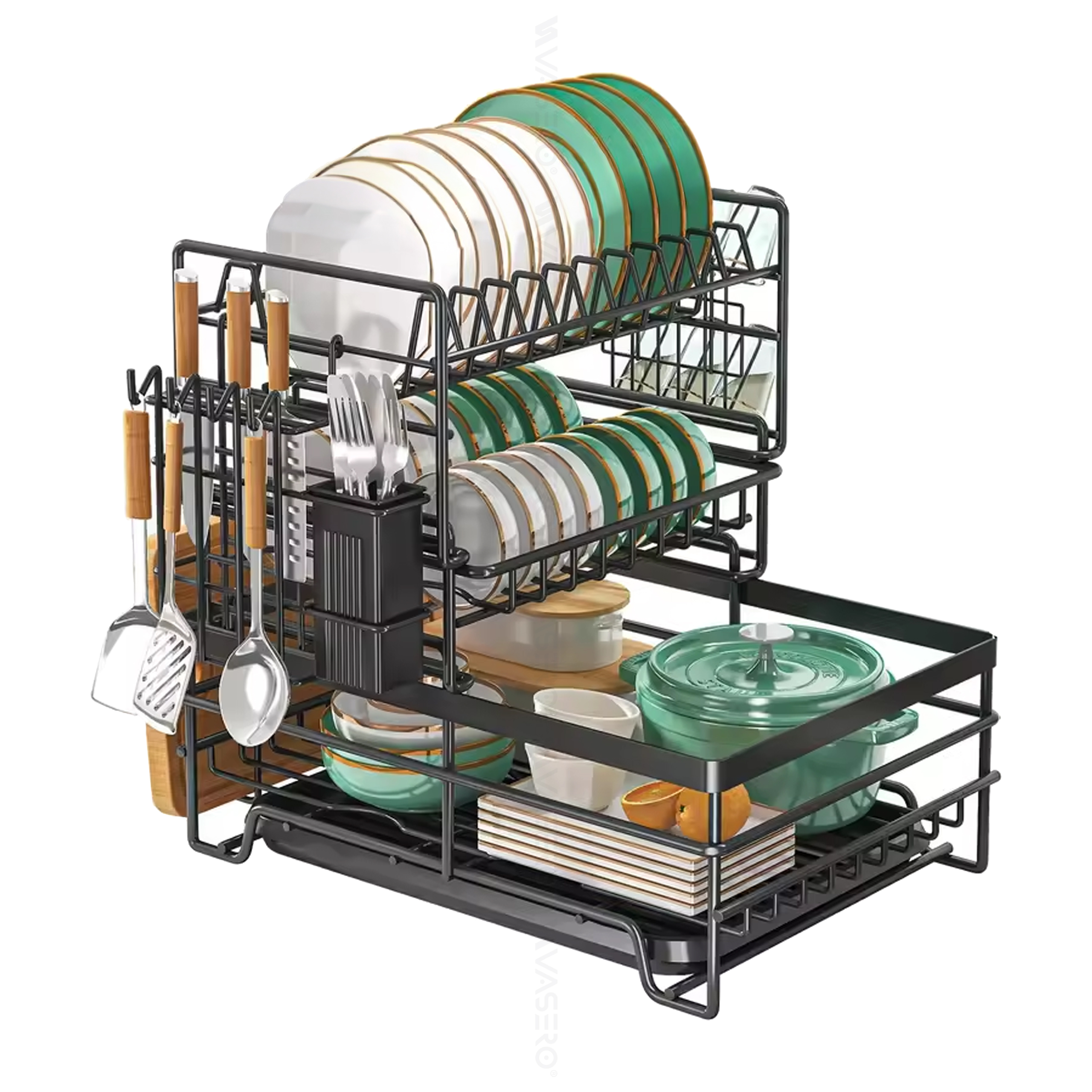 Trzypoziomowa suszarka, ociekacz na naczynia ze stali nierdzewnej, malowana proszkowo na kolor czarny