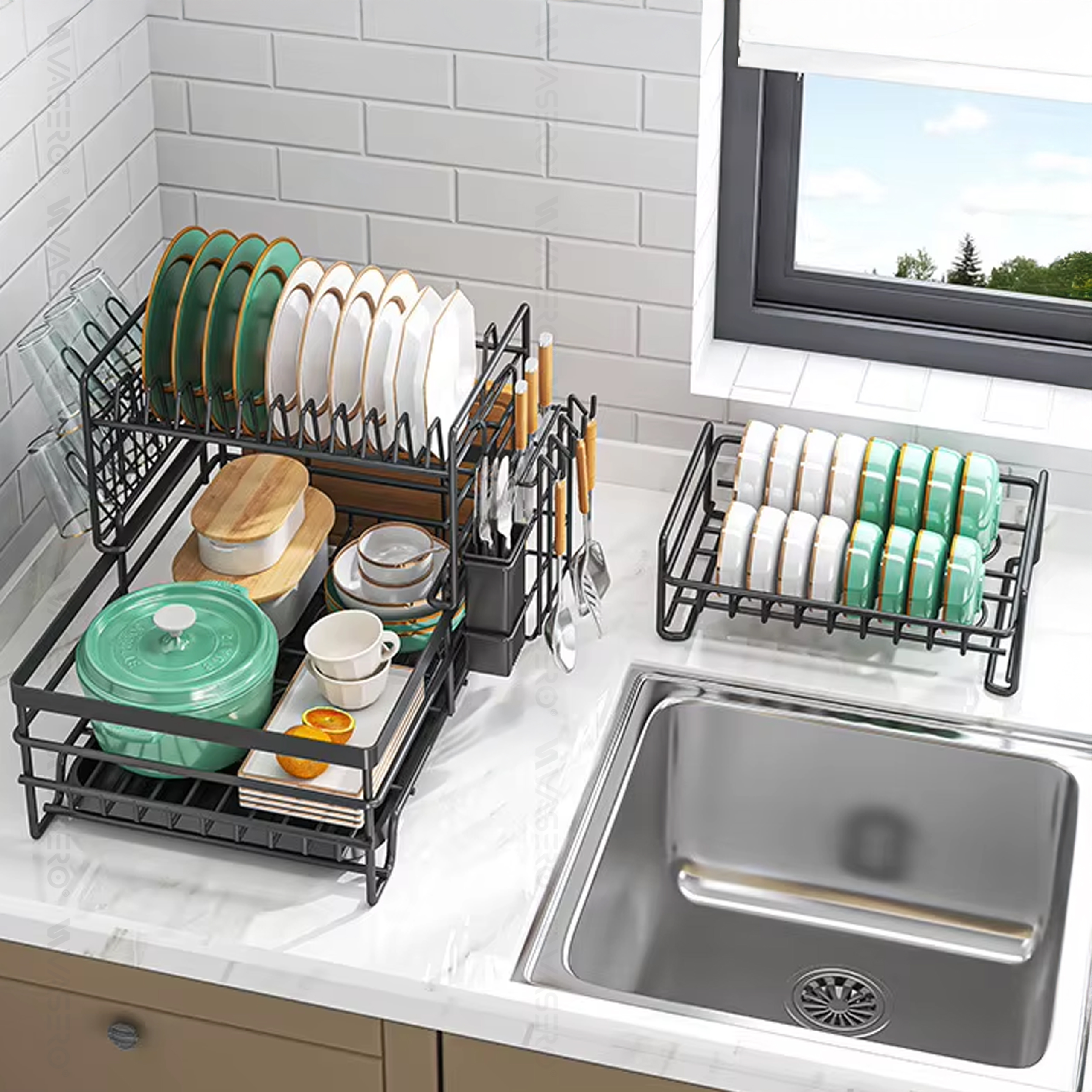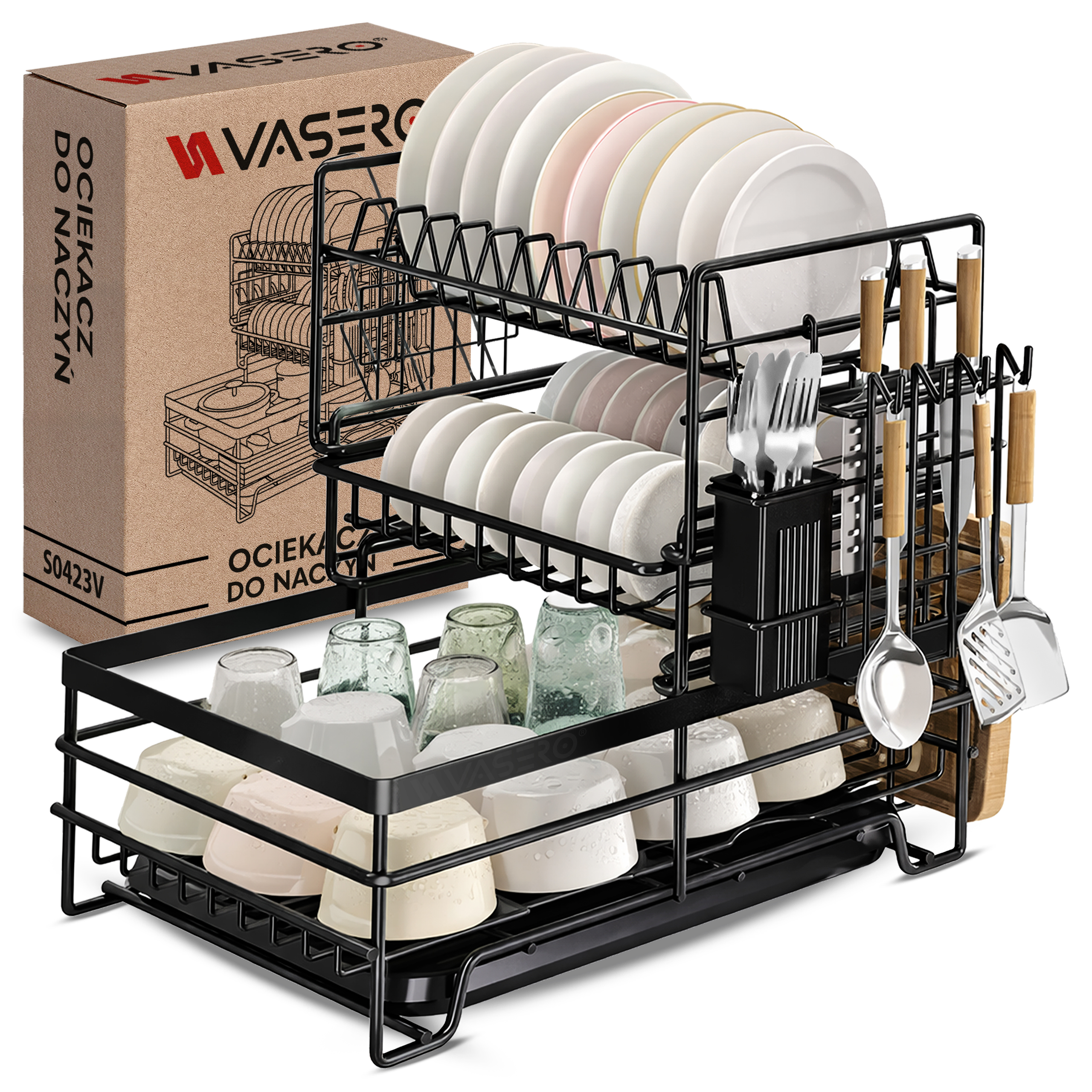 Stojąca Suszarka Do Naczyń Dwupoziomowa Duża Czarna Ociekacz Na Naczynia
