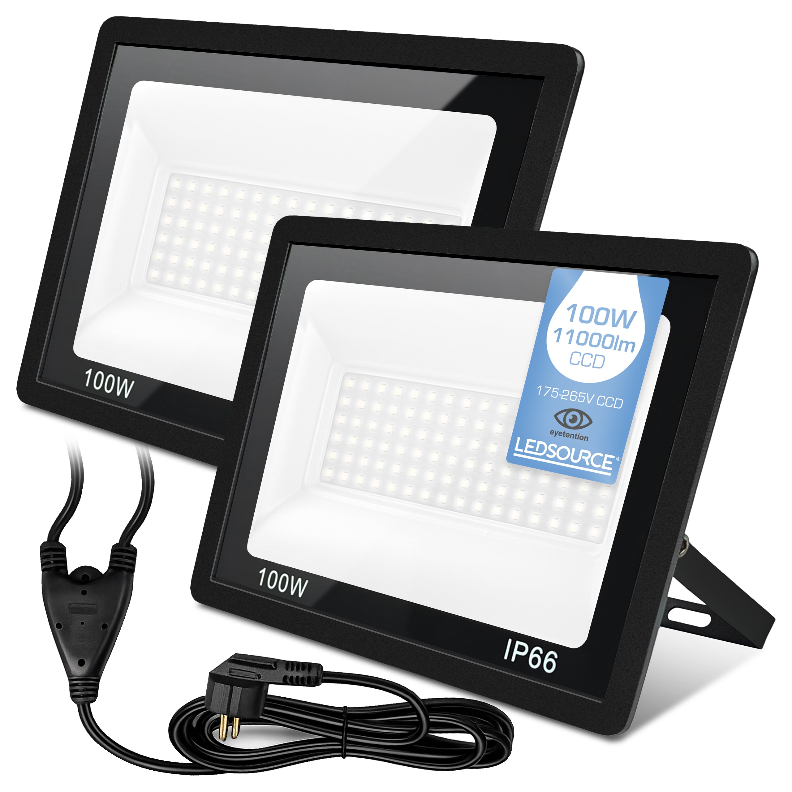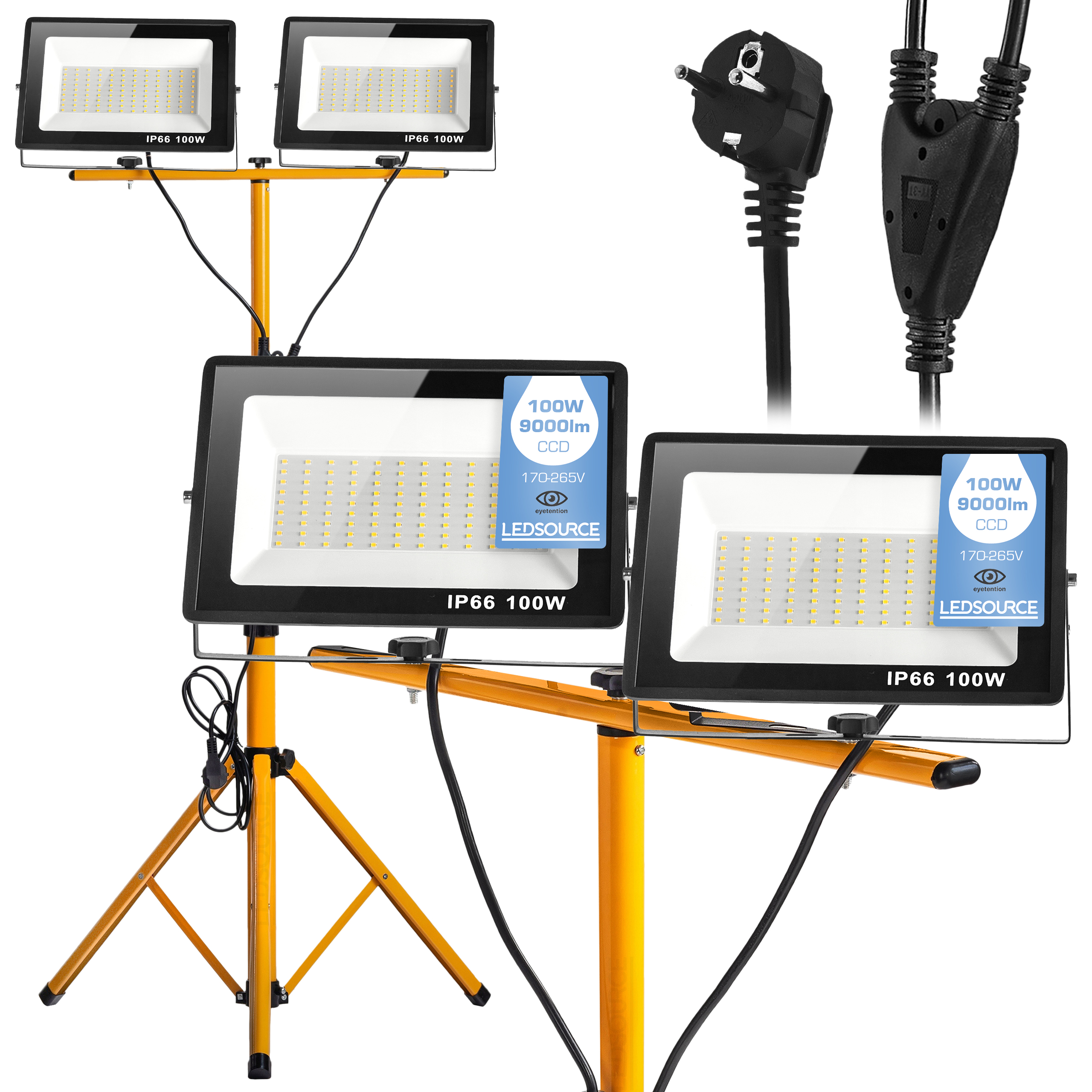 Stojak + 2x naświetlacz LED 100W w barwie neutralnej 9000lm IP66 z przewodem zakończonym wtyczką
