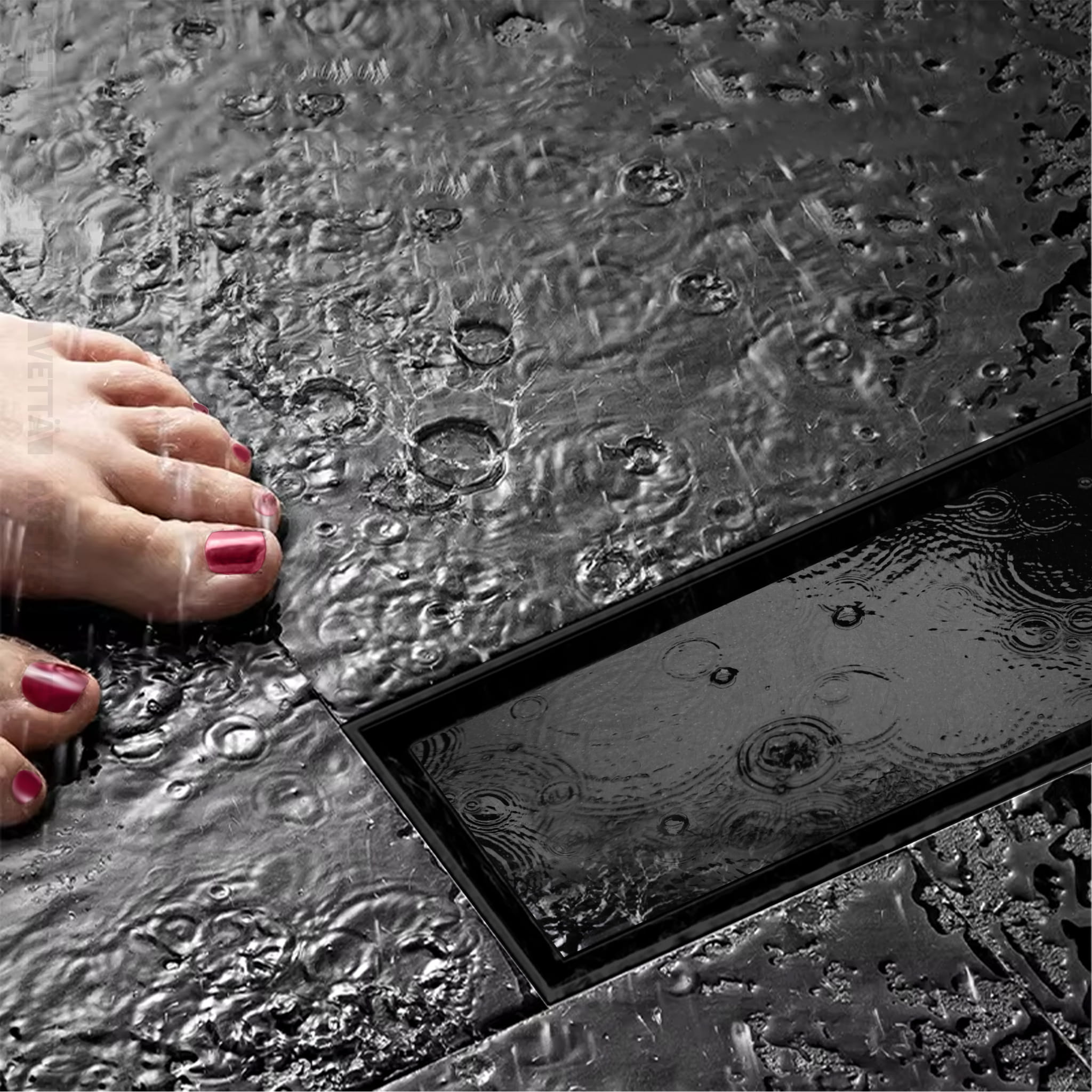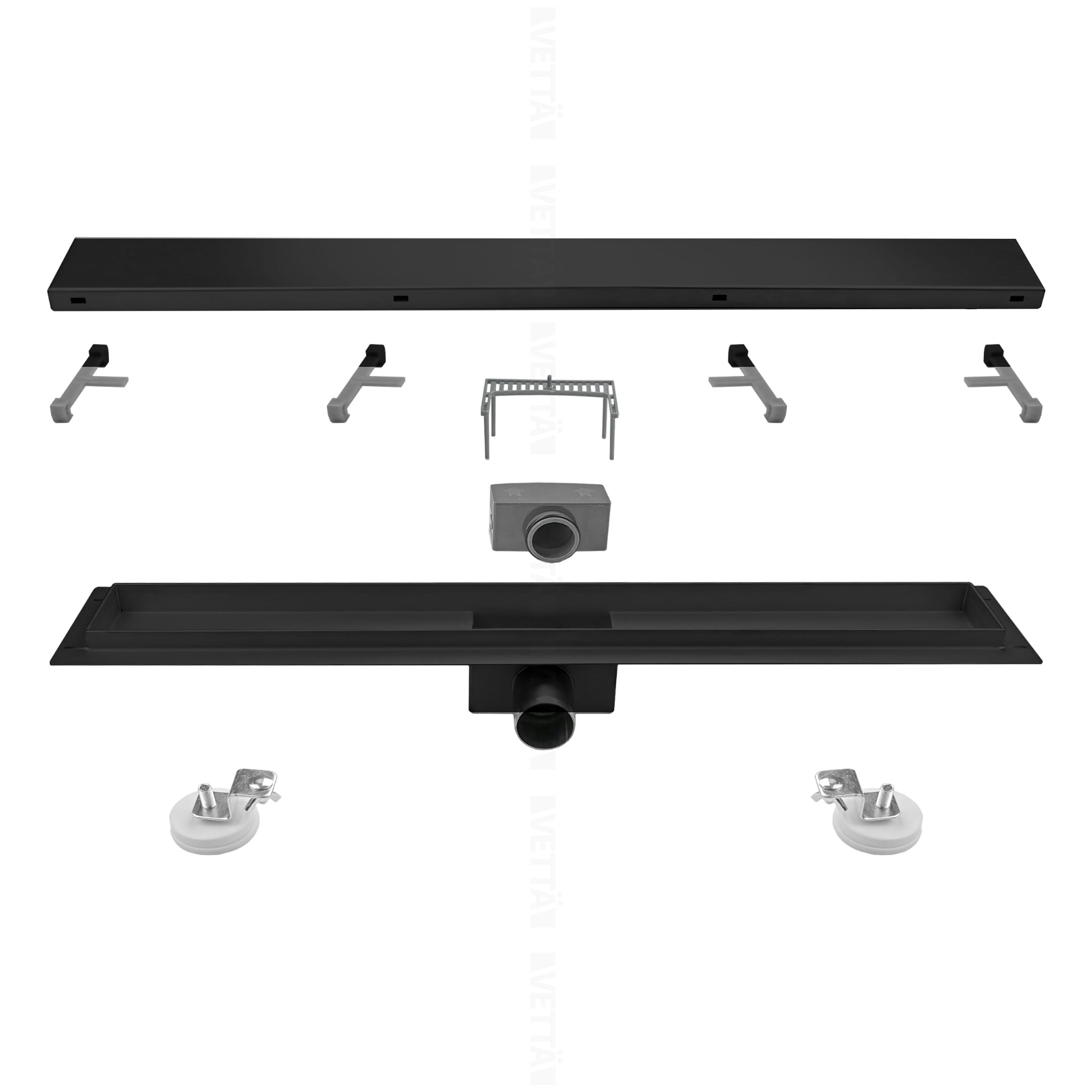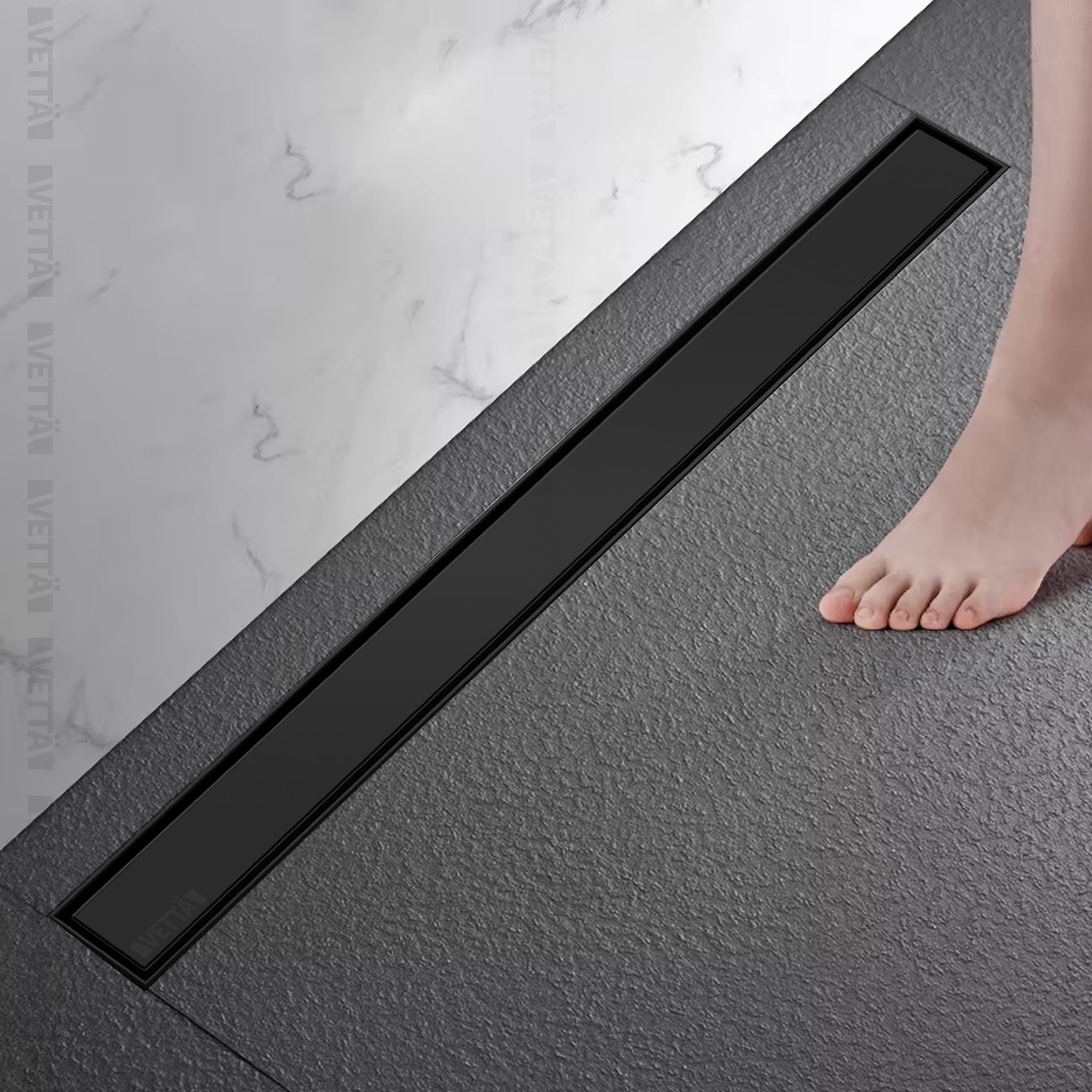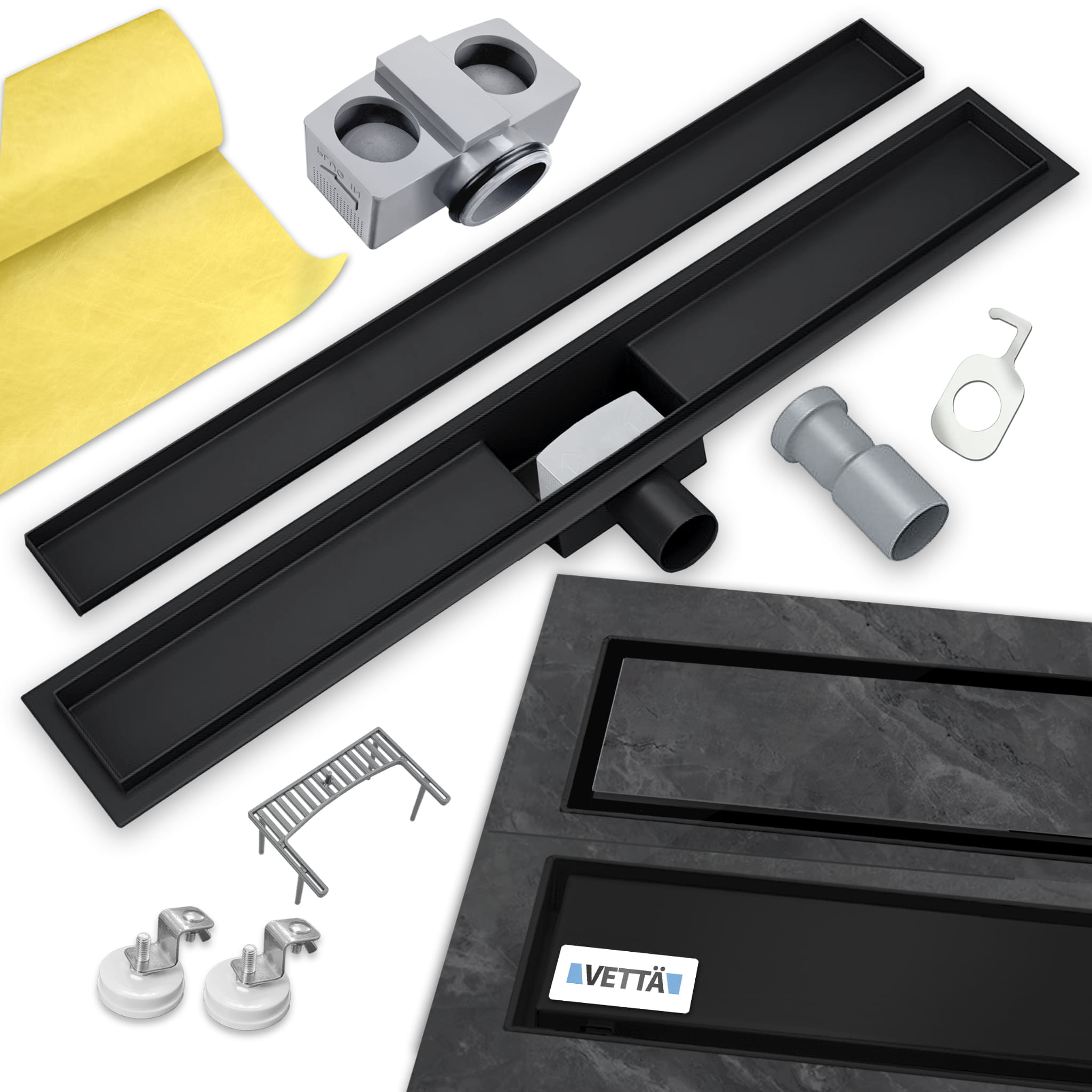 VETTÄ 2w1 Odpływ Liniowy 60cm Niski Syfon 52mm Wysoka Przepustowość Czarny