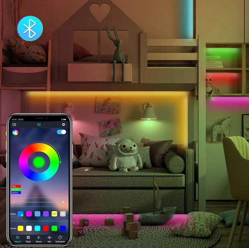 Nadaj niebanalny klimat we wnętrzu swojego domu. Taśma LED RGB dzięki prostej i delikatnej przyjemnej dla oczu barwie idealnie nadają się do ozdobienia ścian każdego pomieszczenia, a w szczególności takich pomieszczeń jak salon, sypialnia czy pokój dziecka.